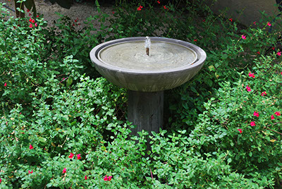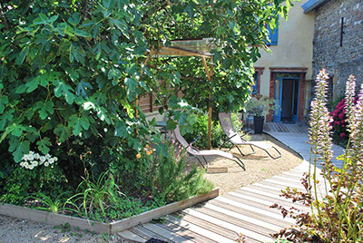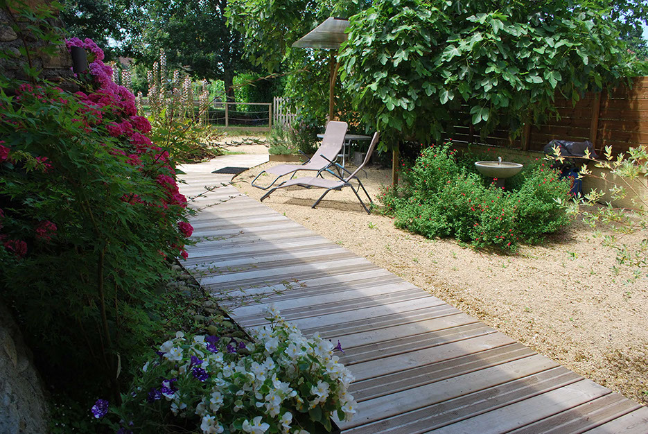 … avec vue sur le jardin, havre de verdure paisible et chant des oiseaux