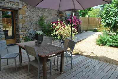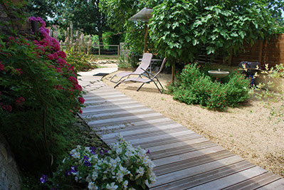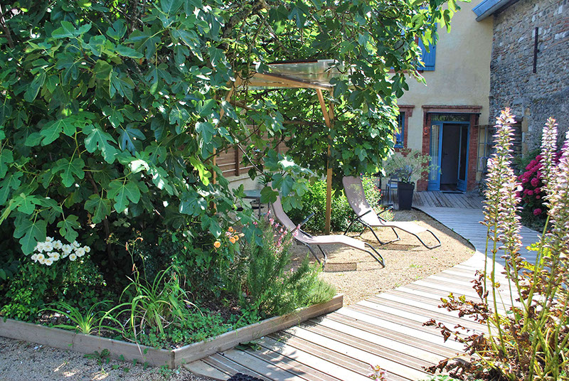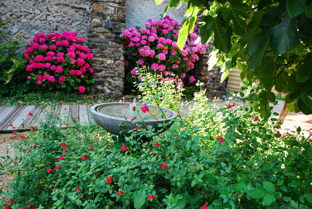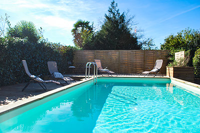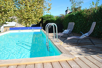 Côté piscine • une eau telle la rivière, douce et naturelle, terrasse en bois et tout le confort pour s'y détendre