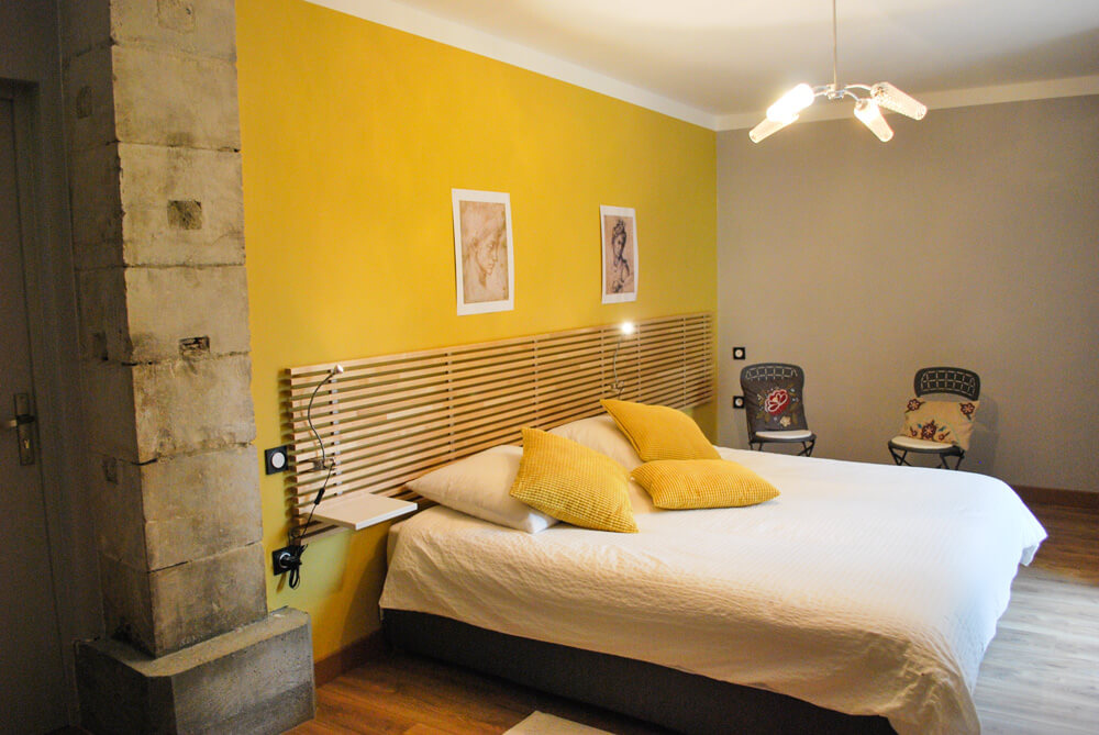 Chambre " Étonnants voyageurs " • Agencement Lit double (possibilité de rajouter un lit pour une personne)