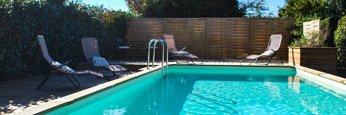 • Piscine (7.5m x 3.5m ) avec terrasse en bois équipée et détente dans le parc.