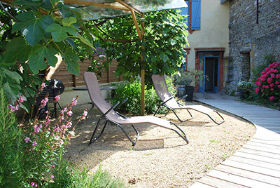 Côté piscine • une eau telle la rivière, douce et naturelle, terrasse en bois et tout le confort pour s'y détendre
