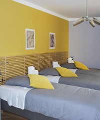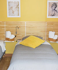 • Chambre 19m2 : lit de 180 x 200 (ou 2 lits de 90) avec salle d'eau (douche et vasque)