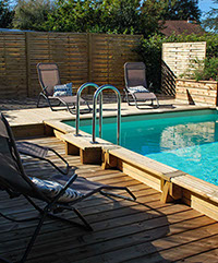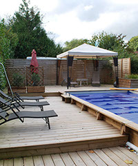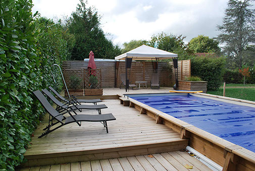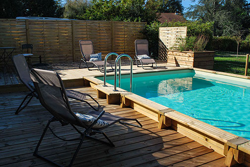 • Piscine (7.5m x 3.5m ) avec terrasse en bois équipée et détente dans le parc.
